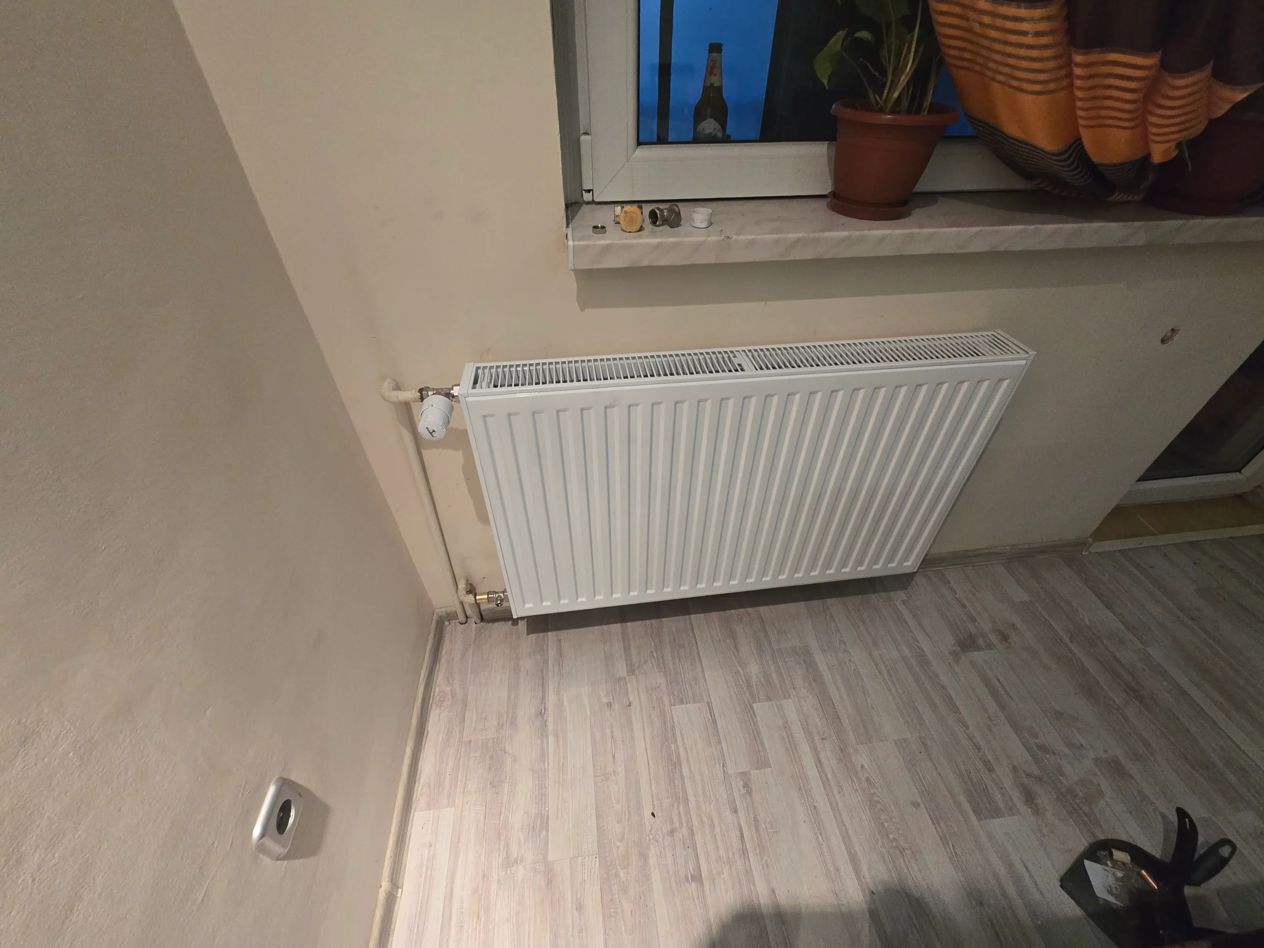 Modernizacja grzejników: zamontowano dwa grzejniki płytowe w pomieszczeniach o powierzchni 9 m² (h=2,6 m) oraz jeden grzejnik płytowy w pomieszczeniu 21 m² (h=2,6 m).