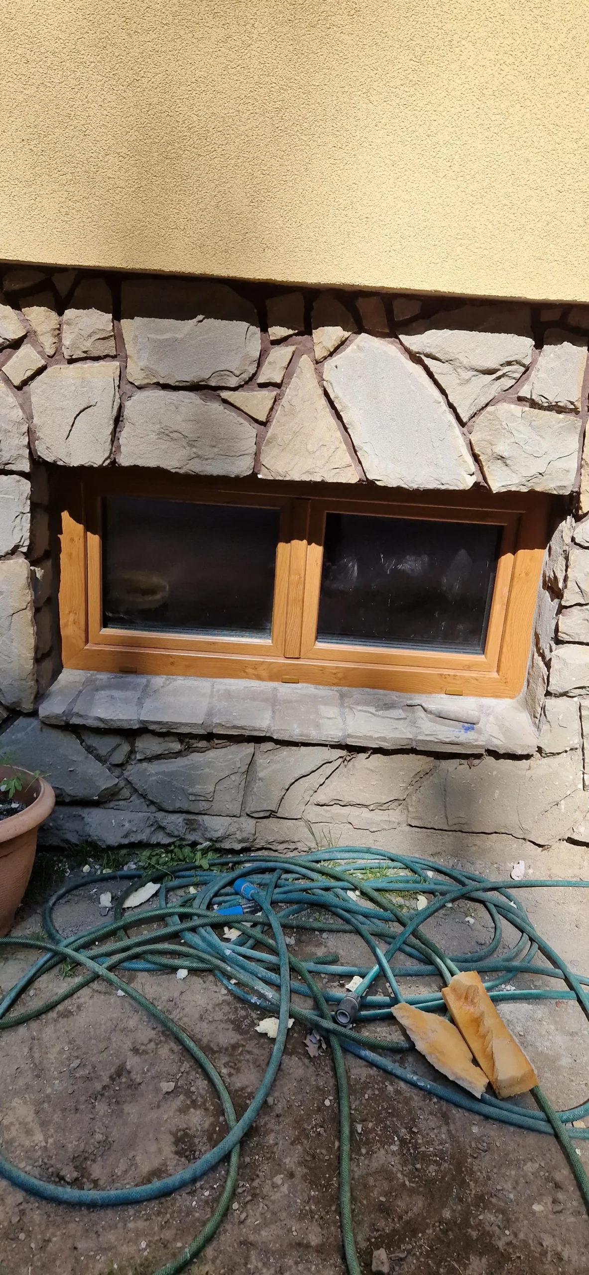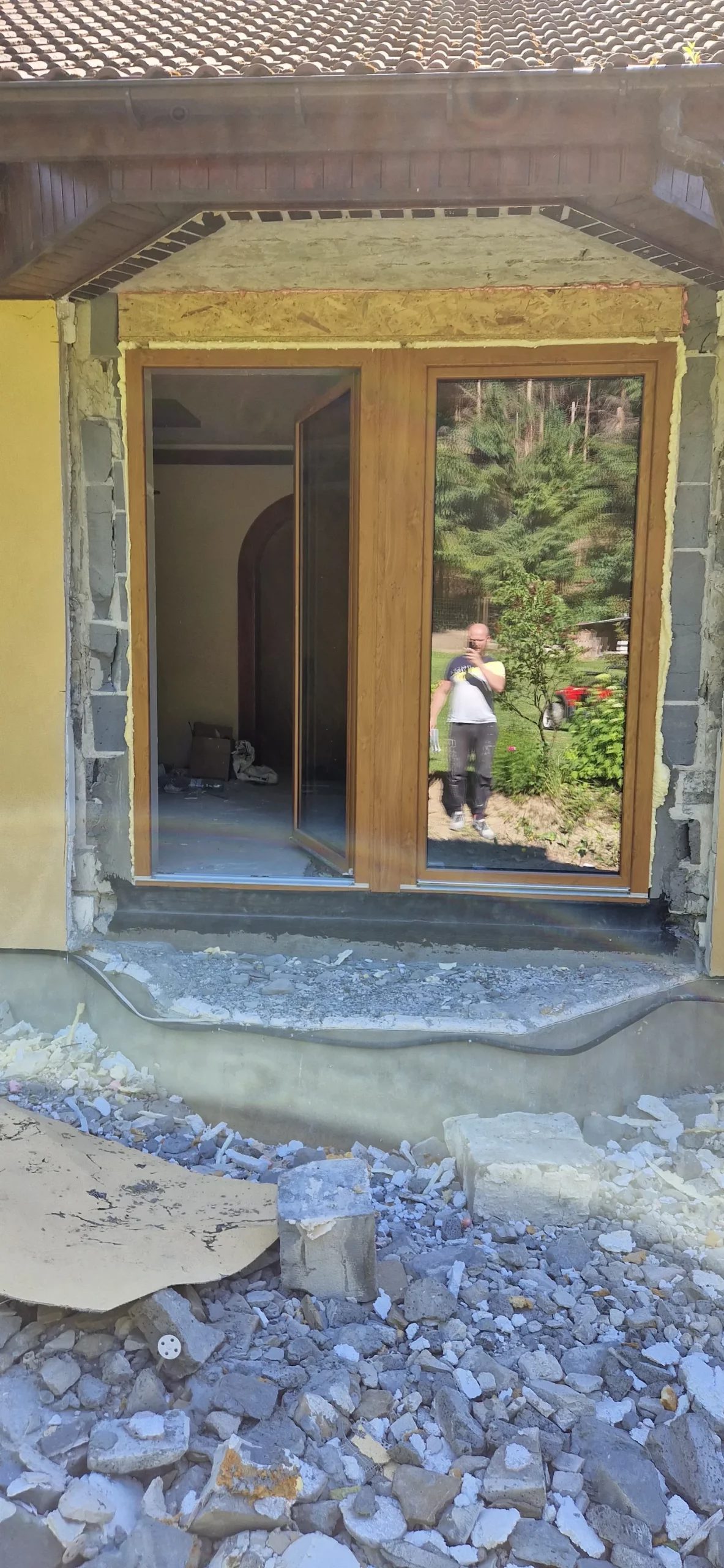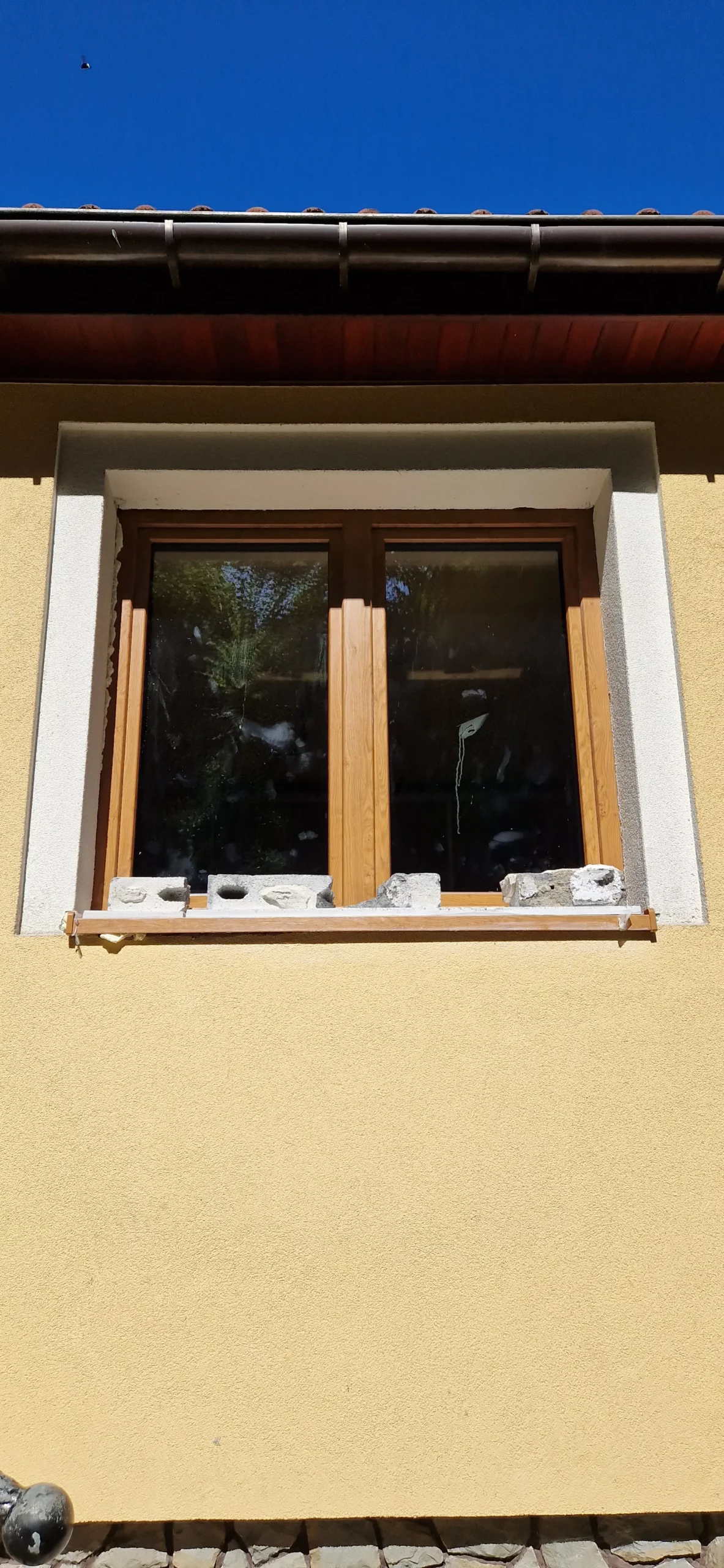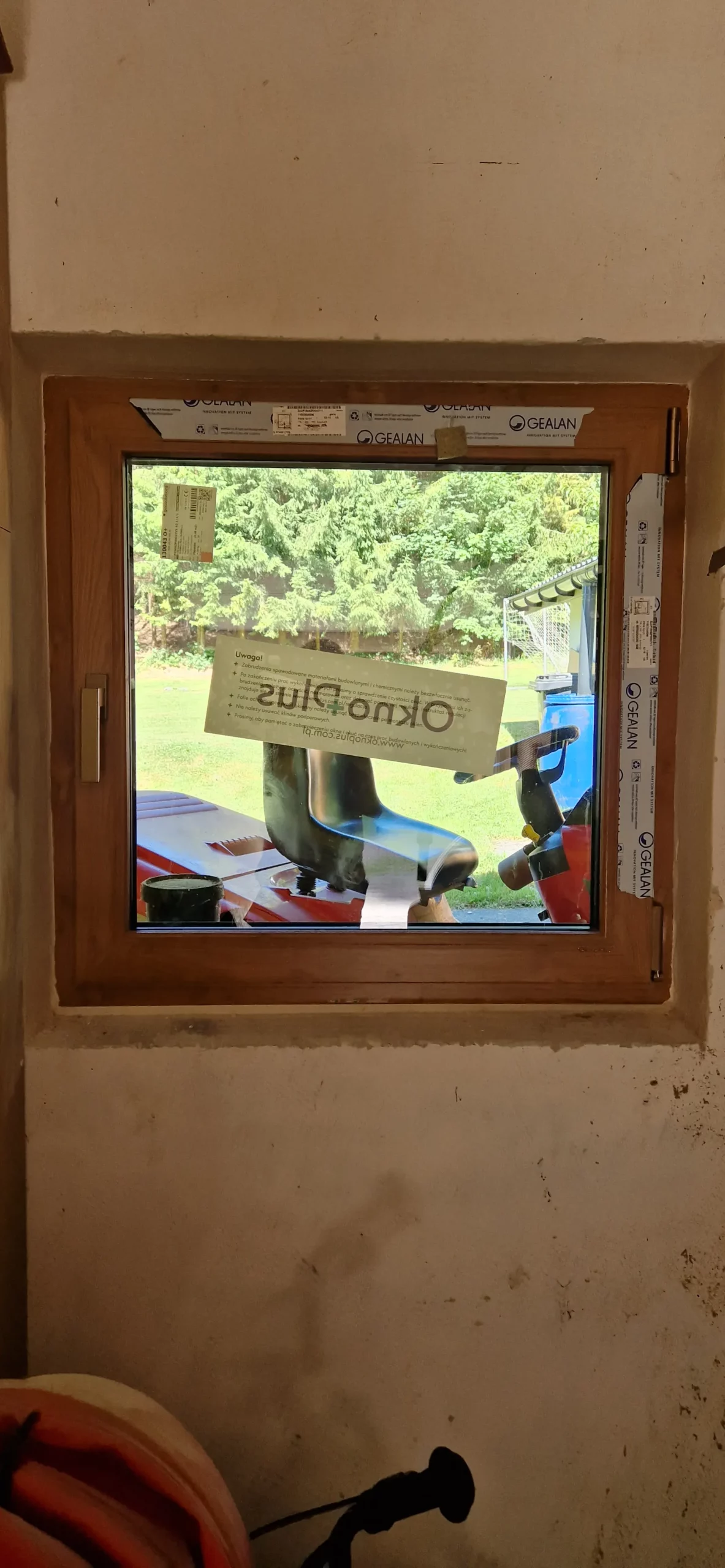 Po zatroszczeniu się o szczelne drzwi przyszła pora także na okna. Pani Katarzyna postanowiła wymienić ich aż dwanaście. Zrobiła to decydując się na producenta Okno Plus w kolorze orzechowym z montażem standardowym – okna osadzono na kotwach montażowych, a szczeliny wypełniono pianką poliuretanową. Obróbkę wykonano regipsem. Zamontowano: