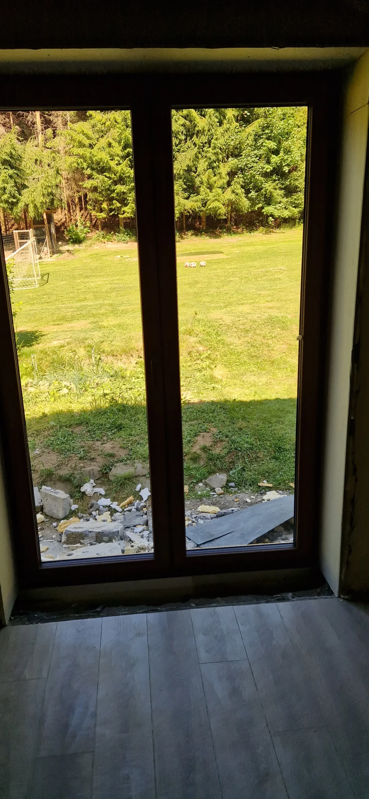 - dwa razy okno stałe w skrzydle o wymiarach 220 x 90 cm,