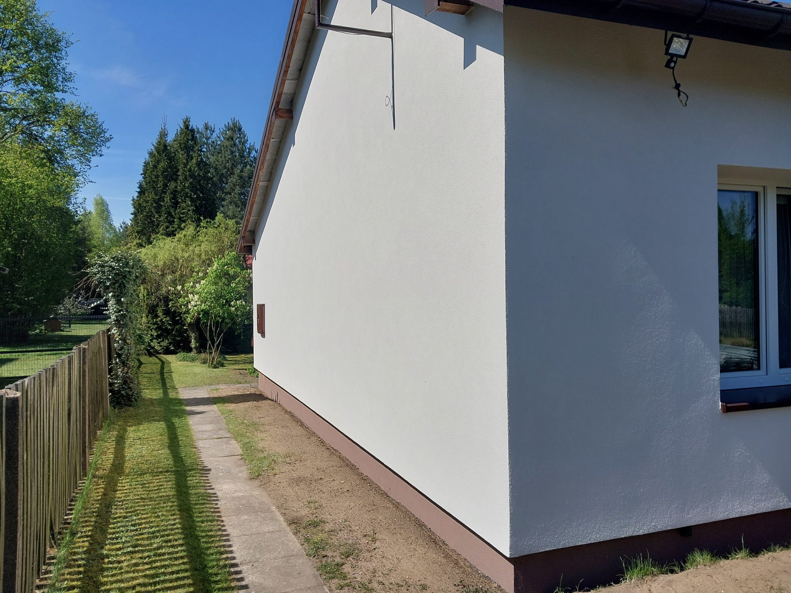 Aby odpowiednio ocieplić dom Pani Michaliny nasza firma, po przeprowadzonym audycie, zdecydowała się na ocieplenie fasady budynku za pomocą styropianu grafitowego o grubości 10 cm oraz białego styropianu o grubości 15 cm. Całość została pokryta białym tynkiem, co nie tylko poprawia walory estetyczne domu, ale także chroni budynek przed różnymi przejawami pogody.